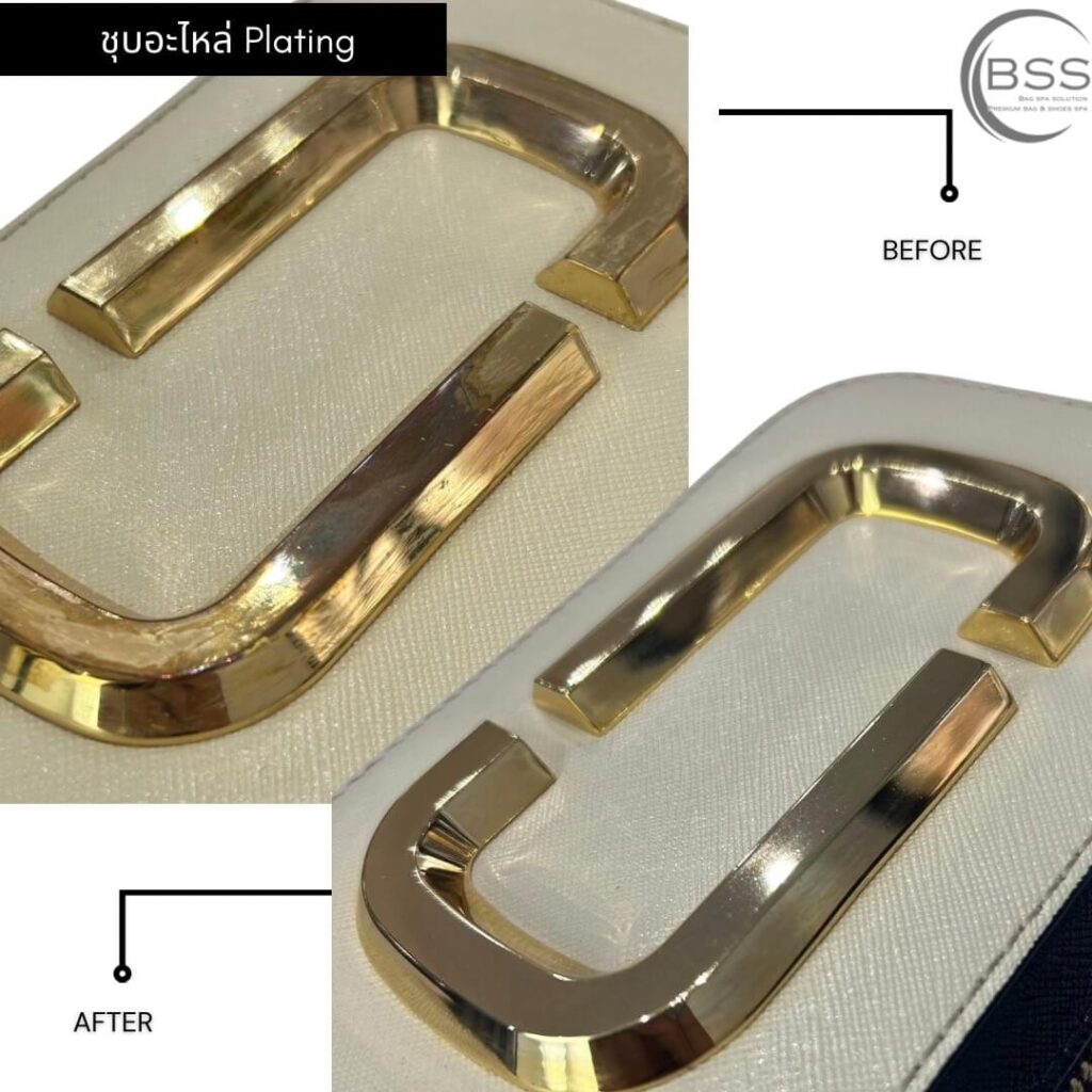 เมื่อกระเป๋าลอก มีรอยขีดข่วนเยอะ จนไม่สามารถขัด ให้กลับมาใหม่เหมือนเดิมได้ ร้านจะใช้วิธีการชุบอะไหล่ เกรด Jewelry ค่ะ